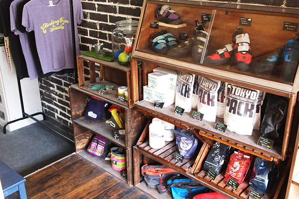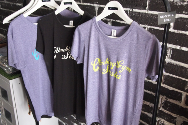 クライミング用品やTシャツなども販売しております。クライミングシューズのサイズも揃えておりますので、お気軽にお声がけください。